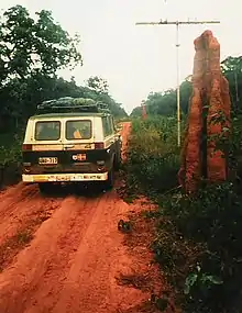 Vegetation on termite mounds usually differs highly from vegetation in the surrounding.[8][9] In African savannas, Macrotermes mounds form 'islands' with high tree densities. This is usually attributed to the fact that due to the digging of termites and due to their decomposition of plant material, the mound soils are generally more fertile than other soil. On top of that, mound soils have been found to contain more water than their surroundings, a clear advantage for plant growth in savannas.[10] The high tree densities on termite mounds attract high densities of browsing herbivores, due to the high nutrient contents in foliage from trees growing on mounds,[11][12] or perhaps due to the high quantities of food and shelter on mounds.[9]