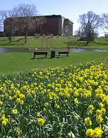The Memorial Library (renamed University Centre in 1970) was constructed in the Tudor-inspired Gothic Revival style. The library also included a set of plaques, now located on the ground floor atrium of the Wallace McCain Student Centre, which are listed in the Canadian Forces' National Inventory of Canadian Military Memorials – No. 13002-004.[22] The plaques list the names of Allisonians who lost their lives at war. Every year since 1927, the names of each of the fallen are read aloud during the University's annual Remembrance Day service.