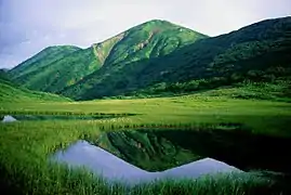 | Mount Hiuchi seen from the Tengu garden mire |