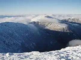 ![]() Mount Jefferson as seen from near the summit of Mount Washington, with the Great Gulf below. | |