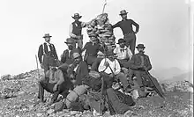 The late 19th century saw increased interest in the area for its own qualities and for recreation rather than for its resources. In 1875 an army surveying party made the first recorded ascent to the mountain's summit, via Lytle Creek, and estimated the height of the peak.[44] In 1880, W.H. Stoddard, brother-in-law of railroad baron Collis P. Huntington, built a resort in what is now called Stoddard Canyon. Frank Keyes converted Dell's Camp from a mining support station into a rental resort. Early mountain guide William B. Dewey led parties of guests to the summit on a loop corresponding to the present-day Mt. Baldy Trail and Devil's Backbone Trail. Rental cabins were also built in Evey Canyon. Access to the upper canyon was impeded by the precarious nature of the trail going over the Hog Back slide, but by the turn of the century Dell's Camp nevertheless entertained as many as a hundred guests in a weekend.