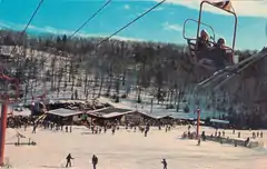 Mount Tom Ski Area was a ski resort in Holyoke, Massachusetts, in the Mount Tom Range in the western part of Massachusetts about 10 miles north of Springfield. It opened in 1962 and closed in 1998. The slopes of the former ski area are located off U.S. Route in the Smith's Ferry neighborhood of Holyoke, adjacent to the former Mountain Park, now a music venue. Both Mountain Park and Mt. Tom were once owned by the O'Connell Construction Company. It was rumored that Mt. Tom was created so that the company could keep seasonal workers working during the winter and keep them available for the summer construction season. Since its closure arsonists have destroyed much of the former resort's buildings. In late 2016, a brush fire burned on the former ski slopes, burning mostly loose brush. No buildings caught fire in that event. However from 2016 on, several smaller shacks were burned to the ground. In March 2018, the former ski rental shop was completely destroyed by a fire, and on February 23, 2020, the main lodge was almost entirely destroyed.[1] While snowmaking equipment and chairlifts have been removed, small numbers of skiers in recent years have continued to ascend the area's slopes on foot.[1][2] In 2017, a proposal from a local-area resident was brought to the city planning board's attention to re-open the ski area. As of 2021, no proposals have been successful.