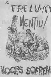 By 1973, FRELIMO were also mining civilian towns and villages in an attempt to undermine the civilian confidence in the Portuguese forces.[35] "Aldeamentos: agua para todos" (Resettlement villages: water for everyone) was a commonly seen message in the rural areas, as the Portuguese sought to relocate and resettle the indigenous population, in order to isolate the FRELIMO from its civilian base.[87] Conversely, Mondlane's policy of mercy towards civilian Portuguese settlers was abandoned in 1973 by the new commander, Machel.[88] "Panic, demoralisation, abandonment, and a sense of futility—all were reactions among whites in Mozambique" stated conflict historian T. H. Henricksen in 1983.[70]