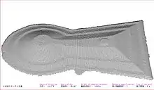 A feature of these funerary mounds is that they contain – along with the buried people – items made of iron, weapons worn by individuals including arrowheads, swords, hoe and spade tips, and many other similar items. Also found in the mounds are antiquities made of gilded bronze such as horse tacks and sash buckles.[5] The Daisen Kofun mound is approximately 500 metres (1,600 ft) long and 300 metres (980 ft) across at its widest point, while the entire tomb area is 840m long.[12] Enclosed by three moats, the mound rises approximately 35m above the surrounding terrain. The inner moat is the widest of the moats at approximately 60 metres (200 ft). The mound is approximately 100,000 square metres (1,100,000 sq ft) in area, and the entire tomb is 460,000 square metres (5,000,000 sq ft).