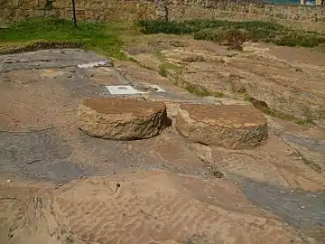 A few structures built by the Muisca still exist today; the Cojines del Zaque ("cushions of the zaque") in Tunja are two round stones with inclined upper parts used for religious ceremonies. Of the Goranchacha Temple, a circle of pillars remained, located on the terrains of the UPTC, also in Tunja. The holiest temple of the Muisca, the Sun Temple in sacred City of the Sun Suamox had been destroyed by fire when the Spanish conquerors looted the shrine and has been rebuilt based on archaeological research by Eliécer Silva Celis. The temple is part of the Archaeology Museum of the city in Boyacá.[56]
