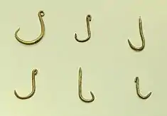 As the Tairona of the Colombian Caribbean coast, the Muisca made the zoomorphic figurines based on the fauna with their habitat of the area. Main animals used for their figures were the frog and serpents. The serpents were made in zig-zag shapes with eyes on top of the head. Many serpentiform objects have the typical forked tongue of the snake represented as well as the fawns clearly added. Some of the snakes have beards, moustaches or even a human head.[7] Researcher Gerardo Reichel-Dolmatoff theorised in his book Orfebrería y chamanismo in 1988 that the basis for the beards and moustaches may have been the abundant fish present on the Altiplano and essential part of the diet of the Muisca and their ancestors, as evidenced in Aguazuque; Eremophilus mutisii.[8][9][10]