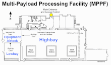The interior of the primary MPPF building is divided into a low bay, high bay, and equipment airlock.