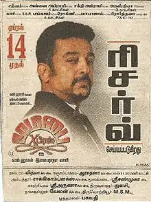 During the making of the film, Kamal Haasan suffered a minor injury which resulted in severe bruising, though his co-passenger on the motorbike in the stunt escaped injury.[17] The film geared up for a 14 April release clashing with the Rajinikanth starrer Chandramukhi and the Vijay starrer Sachein, while a Telugu version was also planned to be dubbed from the Tamil film.[18] Kamal Haasan launched an audio company called Rajkamal Audios, just to release the film's music and held a special opening event at Prasad Labs.[19]