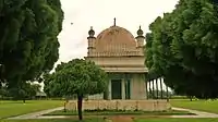 Nawab Siraj-ud-Daulah established a palace near the Motijhil (Pearl Lake). The Nizamat Imambara was built for Shia Muslims. The palace complex was fortified and known as the Nizamat Fort. The main entrances of the Nizamat Fort had musicians' galleries. The gates were high, imposing and tall enough for an elephant to pass through. The Khoshbagh garden was the burial place of the Nawabs.[7] The city had a Bengali majority population, including Bengali Muslims and Bengali Hindus. There was an influential Jain community involved in trade and commerce.[8] An Armenian community also settled and became financiers for the Nawab. The Jagat Seth were one of the prominent banking families of Murshidabad. They controlled money lending activities and served as financiers for administrators, merchants, traders, the Nawabs, the Zamindars, as well as the British, French, Armenians and Dutch. The merchants built many mansions, including the Azimganj Rajbati, Kathgola house and Nashipur house.