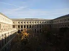 The building is on the site of the first General Hospital of Madrid. King Philip II centralised all the hospitals that were scattered throughout the court. In the eighteenth century, King Ferdinand VI decided to build a new hospital because the facilities at the time were insufficient for the city. The building was designed by architect José de Hermosilla and his successor Francisco Sabatini who did the majority of the work. In 1805, after numerous work stoppages, the building was to assume its function that it had been built for, which was being a hospital, although only one-third of the proposed project by Sabatini was completed. Since then it has undergone various modifications and additions until, in 1969, it was closed down as a hospital.