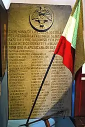 The Mexican Army dislocated the monks living here during the Mexican-American War in order to defend Mexico City from the invading U.S. Army. The Mexicans fortified the building, which included building the parapet.[4] At the time, the complex was far outside the city limits. On 20 August 1847, Battle of Churubusco was fought. When the Mexicans ran out of ammunition, the battle turned to hand-to-hand fighting. When the Mexicans were defeated U.S. General David Twiggs asked General Pedro María de Anaya to surrender his ammunition. The reported response of Anaya is "If there was any, you wouldn't be here."[2] This is also the site where Saint Patrick's Battalion, an Irish regiment originally aligned the U.S., switched sides and fought with the Mexicans to defend Mexico City. A plaque honoring them is placed at the main entrance.[1] In 1869, President Benito Juárez declared the site a national monument in honor of the battle,[3] which was reaffirmed in 1933.[4] However, this did not turn it into a museum. From 1876 to 1914, it served as a military hospital, specializing in contagious diseases. In the 1920s, it was an art school, and from 1920 to 1960 it was a depot.[2] In the 1960s and 1970s, this building was known unofficially as the Transport Museum as a large number of old vehicles were stored there. This collection was eventually sent to Zacatecas in 1985.[3]