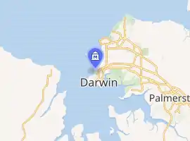 In 1964 a bill was introduced into the Northern Territory Legislative Council to start a museum in Darwin by making the Museums and Art Galleries Board of the Northern Territory.[1] The first director, Dr. Colin Jack-Hinton, was appointed in 1970. The Old Town Hall in Smith Street in Darwin's CBD was chosen as the Museum's first location. The museum contained Southeast Asian and Pacific culture, maritime history, natural sciences, Indigenous culture and contemporary art. Before Cyclone Tracy in 1974 the Old Town Hall was almost complete from renovations. The cyclone caused major structural damage to the building and a portion of the art collections were damaged. The salvaged collections were put in rented space scattered around Darwin.