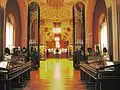 Indisputably, the most representative section of the entire museum is the Ruhmeshalle (hall of fame) located in the first floor. A particular highlight of the Ruhmeshalle are the frescos by Karl von Blaas, portraying the most important military events (victories) in Austrian history since the times of the Babenberg dynasty.[4] The four large wall arches show the victories of the Imperial Army, the battle of Nördlingen 1634, the war council at the battle of St. Gotthard 1664, the battle of Zenta 1697, and the relief of Turin 1706; the left adjacent hall contains depictions of events during the reign of Maria Theresia and Joseph II until the siege of Belgrade in 1789; the right adjacent hall contains depictions of the Napoleonic Wars stretching from the battle of Würzburg in 1796 to Tyrol's struggle for freedom in 1809 and the armistice negotiations of field Marshal Radetzky with King Vittorio Emanuele II of Sardinia following the battle of Novara in 1849. The true significance of the Ruhmeshalle, that of a memorial, however, only becomes discernible at the second glance: On the walls of the adjacent halls and in the Ruhmeshalle itself, one will find several marble plaques, bearing the names of over 500 officers (from colonels to generals of the Imperial Army, known as Imperial and Royal (k.u.k.) Army as of the beginning of the Thirty Years' War in 1618 until the end of World War I in 1918), indicating the place and date of their death.