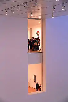 The museum expansion project increased the publicly accessibly space by 25% compared to when the Tanaguchi building was completed in 2004.[39] The expansion allowed for even more of the museum's collection of nearly 200,000 works to be displayed.[38] The new spaces also allow visitors to enjoy a relaxing sit-down in one of the two new lounges, or even have a fully catered meal.[38] The two new lounges include "The Marlene Hess and James D. Zirin Lounge" and "The Daniel and Jane Och Lounge".[38][40] The goal of this renovation is to help expand the collection and display of work by women, Latinos, blacks, Asians, and other marginalized communities.[41] In connection with the renovation, MoMA shifted its approach to presenting its holdings, moving away from separating the collection by disciplines such as painting, design and works on paper toward an integrated chronological presentation that encompasses all areas of the collection.[39]