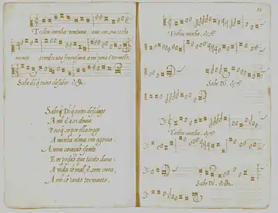 The poetical forms are the vilancete (or vilancico), the cantiga and the romance. The first two, similar to the French virelai and to the Italian ballata, are generally dedicated to the love thematic, though satire and social criticism are not excluded. They share a refrain and stanzas structure. The romance is dedicated to celebrate historical events, applying the same musical text to all the stanzas of the poem.