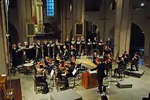 Several compositions have been performed for the first time in Finland by Musicians of the King's Road. Many of these works have lain forgotten in archives for a long time and have consequently not been performed for centuries, neither in Finland nor elsewhere.[1] In spring 2013, Musicians of the King's Road performed the 400-year-old St Matthew Passion written by the German composer Melchior Vulpius. The performances were given within a liturgical context in four churches in Southwest Finland. On Good Friday 2014, the passion was performed in the Taulumäki Church in Jyväskylä and a year later in the church of Vähäkyrö in Vaasa. Later on, Musicians of the King’s Road has continued the passion cycle by performing historical passion settings by Antoine de Longueval, Jakob Meiland, Johann Walter, Christoph Demantius and Bartholomäus Gesius. These performances were conducted by Jonas Rannila.