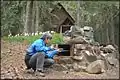 There is a vault-type outhouse located near the cabin. A horse barn, a small shed, an outdoor fireplace with a cooking grill, and a picnic table are also located on the guard station grounds. There is room for tent camping at the site as well.[2][4]