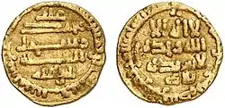 In spring 829, Michael II sent a new fleet to Sicily under Theodotus, who was well acquainted with the island, having already served as its strategos in the past.[42] After landing, Theodotus marched his army to Enna, where the Arabs were continuing the siege. He was defeated in the subsequent battle, but was able to find refuge in the fortress with most of his men. The Muslims now became so confident of victory that they struck their first coins on the island, in the name of Ziyadat Allah and Muhammad ibn Abu'l-Jawari, who however died a short while after and was replaced by Zubayr ibn Gawth. Shortly after that, Theodotus managed to reverse the situation: he led a sally that routed a Muslim raiding party and then defeated the main Muslim army on the next day, killing 1,000 men and pursuing the rest up to the Muslims' fortified encampment, which he placed under siege. The Muslims tried to break out in a night sortie, but Theodotus was expecting such a move and routed them in an ambush.[43][44]