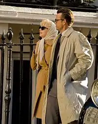 The costume designer for My Week with Marilyn was Jill Taylor.[31] Taylor, who previously worked on Sliding Doors (1998) and Match Point (2005), created the costumes for the film in six weeks and she dressed the entire cast.[32] She sourced many of the items from vintage shops, auction houses and markets.[32] Speaking to Estella Shardlow of Vintage Seekers, Taylor said "I trawled through loads and loads of antiques fairs and vintage shops to see if we could find original vintage pieces that would suffice for the film. We were pretty successful but we also had to reproduce a lot from original photographs – for example, we had to do the scene where she lands in this country, which is well-documented on newsreel."[33] Taylor told Shardlow it was difficult to find fabrics that looked as "lush" as they did in the fifties and she had some challenging costumes to make, including a dress from The Prince and the Showgirl for Dench's character, Sybil Thorndike.[33] The designer also said she had to make some adaptations to a suit worn by Ormond, as she is a completely different body shape to her character, Vivien Leigh.[33] During research for Watson's character, Lucy, Taylor found an original photograph of the cast and crew of The Prince and the Showgirl.[31] One of the girls in the picture was wearing a tartan dress, so Taylor went out and found Watson an original tartan dress to wear.[31] She said she and her team had fun with Watson's character, as she is a young and fashion-conscious girl. The designer said "Given the American influence to England in the 50s, her style is quite Sandra Dee and girlie."[33]