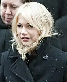 For her performances in My Week with Marilyn, Meek's Cutoff and Take This Waltz, Williams was given the Best Actress award at the 2011 Hollywood Film Festival.[83] On 25 November 2011, it was announced Williams would receive the 2012 Desert Palm Achievement Actress Award from the Palm Springs International Film Festival in recognition of her performance in My Week with Marilyn.[84] Four days later, Williams was nominated for Best Female Lead at the Independent Spirit Awards and Best Actress at the New York Film Critics Circle Awards.[85][86] Williams and Branagh were nominated for Best Actress in a Drama Motion Picture and Best Supporting Actor respectively at the Satellite Awards.[87] Williams was named Best Actress by the Washington D.C. Area Film Critics Association. Branagh earned a nomination for Best Supporting Actor.[88] On 11 December, Williams won the Boston Society of Film Critics Award for Best Actress.[89] She also won the Best Actress award from the Detroit Film Critics Society, while Branagh garnered a nomination for Best Supporting Actor.[90]