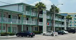The Myrtle Heights-Oak Park Historic District, Myrtle Beach Atlantic Coast Line Railroad Station, Ocean Forest Country Club, Pleasant Inn, and Rainbow Court are listed on the National Register of Historic Places. Also listed were the Chesterfield Inn[17] and the Myrtle Beach Pavilion, both now demolished. The Gay Dolphin Gift Cove on the Boardwalk was built in 1946 and sells seashells and Myrtle Beach souvenirs. It claims to be the "nation's largest gift shop".