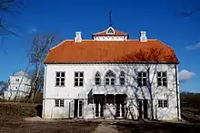 The original structure from 1552, now renovated, was in the Gothic style. The Ida Lange building (1642) is a half-timbered Renaissance residence while the De Linde building (1770) is Baroque with fine period staircases. The Tang building (1839) is Neoclassical in design. Inspired by Dutch architecture, the free standing gate tower from 1790 was added by the estate's owner at the time, Peder Tang.[2]