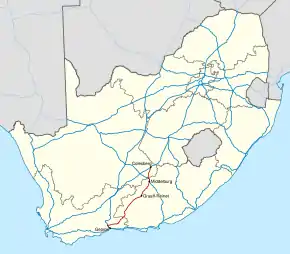 The N9 is a national route in South Africa that connects George with the N1 at Colesberg, via Graaff-Reinet and Middelburg.[1]