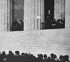 Beginning in 1920, a Navy station located in Anacostia, D.C., NOF, began broadcasting occasional entertainment programs. After installing a vacuum tube transmitter, NAA soon followed with a limited schedule of its own. On May 30, 1922 NAA and NOF jointly broadcast the ceremonies held at the dedication of the Lincoln Memorial,[15] which was the first time that two stations simultaneously transmitted the same program.