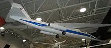 The first known oblique wing design was the Blohm & Voss P.202, proposed by Richard Vogt in 1942.[1] The oblique wing concept was later promoted by Robert T. Jones, an aeronautical engineer at NASA's Ames Research Center, Moffett Field, California. Analytical and wind tunnel studies Jones initiated at Ames indicated that a transport-size oblique-wing aircraft, flying at speeds up to Mach 1.4, would have substantially better aerodynamic performance than aircraft with more conventional wings. At high speeds, both subsonic and supersonic, the wing would be pivoted at up to 60 degrees to the aircraft's fuselage for better high-speed performance. The studies showed these angles would decrease aerodynamic drag, permitting increased speed and longer range with the same fuel expenditure. At lower speeds, during takeoffs and landings, the wing would be perpendicular to the fuselage like a conventional wing to provide maximum lift and control qualities. As the aircraft gained speed, the wing would be pivoted to increase the oblique angle, thereby reducing the drag and decreasing fuel consumption. The wing could only be swept in one direction, with the right wingtip moving forward.