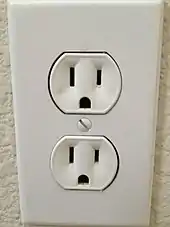 In 46 of the 50 United States[12] and all of Canada, tamper-resistant receptacles are required in new residential construction as of November 2013. These prevent contact by objects like keys or paper clips inserted into the socket.[13] This is accomplished by an interlocking mechanism that requires hot and neutral blades inserted simultaneously to release the small doors blocking the slots. The grounding slot is not blocked by a door.