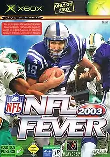 NFL Fever 2003 is an American football video game published and developed by Microsoft Game Studios. It was released in 2002 for the Xbox video game console. The game, which was also used for beta testing for Xbox Live, was preceded by NFL Fever 2002 and followed by NFL Fever 2004.