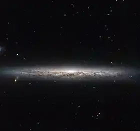 NGC 3501 is a spiral galaxy 80 million light years away. It is located in the constellation Leo. The galaxy was imaged by the Hubble Space Telescope in 2014, showing an edge-on spiral galaxy; its companion NGC 3507 is not included in the photograph.[4]