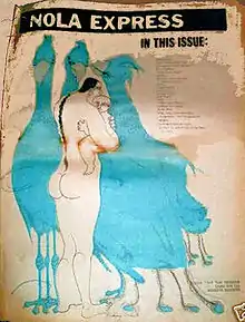 NOLA Express was one of the most outrageous papers of the 1960s. It was one of the most notorious underground newspapers to join UPS and rallied activists, poets, and artists by giving them uncensored voice. Editors Robert Head and Darlene Fife were part of political protests that extended the "memeo revolution" through pamphleteering used by freedom-of-speech poets during the 1960s. NOLA Express was also a member of COSMEP (Committee of Small Magazine Editors and Publishers). These two affiliations with organizations that were often at cross purposes made NOLA Express one of the most radical and controversial publications of the counterculture movement.[1] Part of the controversy around NOLA Express was that it included graphic images that many in Sixties society was deemed as pornographic.