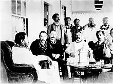 Leleiohoku founded several royal choral societies, including the 1876 Kawaihau Glee Club composed of 15 members.[34][35] They were alternately known as the Kawaihau Serenaders.[36] Until Leleiohoku's death at age 22 in 1877, his groups would compete with the singing troupes organized by his sisters Liliʻuokalani and Likelike.[37] In later life, Liliʻuokalani admitted that "those of Prince Leleiohoku were really in advance of those of his two sisters, although perhaps this was due to the fact that the singing-club of the regent was far superior to any that we could organize; it consisted in a large degree of the very purest and sweetest male voices to be found amongst the native Hawaiians."[38] The name of the glee club was later used for a separate Hui Kawaihau, a business group founded by King Kalākaua and his favorites which was involved in sugar cultivation near Kapaʻa in eastern Kauai.[35]