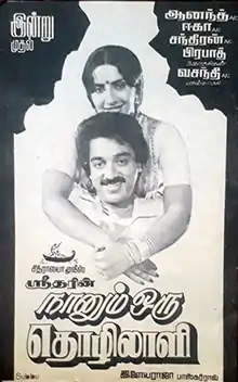 Naanum Oru Thozhilali (transl. I am also a worker) is a 1986 Indian Tamil-language drama film directed and produced by C. V. Sridhar. The film stars Kamal Haasan and Ambika, while Jaishankar, V. S. Raghavan and Devika play supporting roles. The film was also simultaneously shot in Telugu as Andarikante Ghanudu (transl. The toughest of all). Murali Mohan plays supporting role in Telugu version. Tamil version film was released on May 1, 1986.