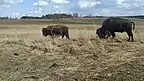 The Nachusa Grasslands planning process called for running up to 100 American bison (Bison bison, also commonly known as "buffalo") on approximately 1,500 acres (610 ha) of the preserve.[4] Thirty bison were released on the Nachusa Grasslands in October 2014.[5] The bison were added to the approximately 700 species logged at the prairie. In April 2015, free-range bison calves were born, adding to hope that the Nachusa herd could be managed so as to be self-sustaining.[6] As of July 2015, 14 calves have been born at Nachusa.[7]