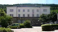 In 1933, the Eutingen station was moved to its present location, about 3 kilometres (1.9 mi) from the centre of the town and not on the Nagold Valley Railway. In connection with the move, a wye was constructed between Hochdorf and the new Eutingen station so that trains between Stuttgart and Freudenstadt no longer needed to reverse directions as had previously been necessary at the old station. In addition, from then on, many Nagold Valley Railway trains ran to the new station at Eutingen instead of to Horb.