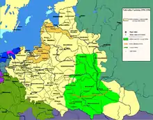 Nalyvaiko, who initially served in private units of Janusz Ostrogski, took an active part in the suppression of the uprising.[1] The Sejm, or the parliament of the Polish–Lithuanian Commonwealth, declared all Cossacks who took part in the rebellion to be guilty of high treason, but pardoned them soon afterwards and the Cossacks were allowed to keep their boats and arms. Meanwhile, the army of the Crown of Poland, led at the time by hetman Stanisław Żółkiewski, started a new campaign in Moldavia and Transilvania in support of Ieremia Movilă's claims to the Moldavian throne.