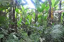The park's main forest type is mixed secondary deciduous forest including secondary evergreen forest. At the park's lower elevations, in the Luang Namtha plain, human modification of the forest is evident and habitats include bamboo and scrub areas.[2]
