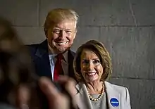 Pelosi lost the speakership in 2011 after the Republican Party won a majority in the House of Representatives in the 2010 elections. But she retained her role as leader of the House Democratic Caucus and returned to the role of House minority leader. In the 2018 midterm elections, the Democrats regained control of the House.[3] When the 116th Congress convened on January 3, 2019, Pelosi was again elected Speaker,[4] becoming the first former Speaker to return to the post since Sam Rayburn in 1955.[5] Under Pelosi's leadership, the House of Representatives impeached President Donald Trump, first on December 18, 2019, and again on January 13, 2021.[6]