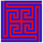 The Nandavarta or Nandyavarta is one of the eight auspicious symbols of Jainism for the Svetambara sect.[1] It is an ashtamangala which is used for worship, and could be made with rice grains.[2] It is also the symbol of 18th Tirthankar Aranatha according to Śvētāmbara and 7th tirthankar Suparshvanatha according to digambar.[3] The symbol has 4 arms with compulsorily 9 corners/ turns each.