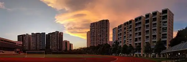 Nanyang Junior College's campus was built on a hilly ridge off Lorong Chuan, and underwent a redevelopment in the 2000s to keep up with the changes to the academic and non-academic curriculum.[43]