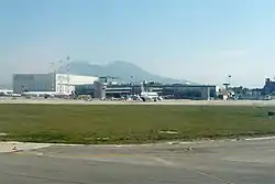 Naples International Airport (IATA: NAP, ICAO: LIRN) (Italian: Aeroporto Internazionale di Napoli) is the international airport serving Naples and the Southern Italian region of Campania. According to 2019 data,[3] the airport is the fifth-busiest airport in Italy and the first one in Southern Italy. The airport serves as a base for easyJet, Ryanair and Volotea.[4] Located 3.2 NM (5.9 km; 3.7 mi) north-northeast[1] of the city in the Capodichino district of Naples, the airport is officially named Aeroporto di Napoli-Capodichino Ugo Niutta, after decorated WWI pilot Ugo Niutta.