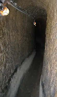 Tuff is strong and easily worked, making it an ideal building material. Tuff was mined through access and removal shafts called the occhio di monte, ("eye of the mountain"). Through these shaft, gigantic blocks of tuff were quarried and pulled up. The resulting void was a bottle shaped cavity with sloping shoulders, which provided ample reinforcement to prevent future cave-ins. After the tuff was quarried it was used as building material during roughly the Angevin, Aragonese and Bourbon periods.