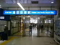 Narita Airport Terminal 1 (Narita Airport) Station (成田空港駅, Narita Kūkō eki) is an underground train station located beneath Terminal 1 of Narita International Airport in Narita, Chiba, Japan. The station is shared between East Japan Railway Company (JR East) and the private railway operator Keisei Electric Railway.