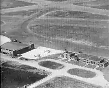 By 1935 the need for an airport larger and closer to the city than Sky Harbor Airport was realized and a citizens' committee was organized by mayor Hilary Howse to choose a location. A 340-acre (1.4 km2) plot along Dixie Parkway (now Murfreesboro Road) composed of four farms was selected, and construction began in 1936 as one of the first major Works Progress Administration projects in the area. The airport was dedicated on November 1, 1936, as Berry Field, named after Col. Harry S. Berry, the Tennessee administrator for the Works Progress Administration. It opened in June 1937 with much fanfare, including parades, an air show, and an aerial bombardment display by the 105th Aero Squadron, which was based at the field.[4] Passenger service began in mid-July through American Airlines and Eastern Airlines, both of which operated Douglas DC-3s. The new airport had three asphalt runways, a three-story passenger terminal, a control tower, two hangars and a beacon, and was built at a cost of $1.2 million. In its first year Berry Field served 189,000 passengers.[3][5][6]