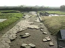 One of the two areas preserves the remains of the monumental landing gate, which from the first century BC marks the northern entrance into the city, and an urban hinge that connected the gate with the town.[8]