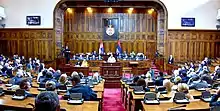 The assembly convenes in the House of the National Assembly in Belgrade.[2]