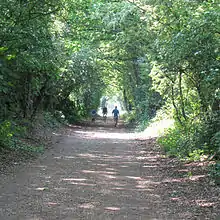 At Wheathampstead there is then continuous off road mostly unsurfaced path to Welwyn Garden City and then a signed on road route via the town centre to the junction at Twentieth Mile Bridge with route 12. The section between Wheathampstead and Welwyn is also known as the Ayot Greenway and follows the trackbed of the former railway line between Dunstable and Hatfield.[2]