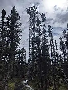 Each terrestrial site is outfitted with soil sensor arrays and a tower mounted with sensory equipment. Towers are built to extend above the vegetation canopy and take measurements such as on air quality, carbon dioxide flux, temperature, and atmospheric pressure.[14] Additional sampling plots are located within the airshed of the tower.[11]